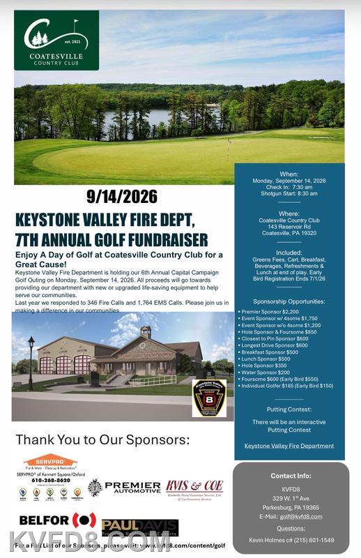 On September 14th, 2026, KVFD will be hosting its 7th Annual Golf Outing. As with previous years, proceeds from this event will be designated and used for Capital Projects through the Capital Campaign initiative.